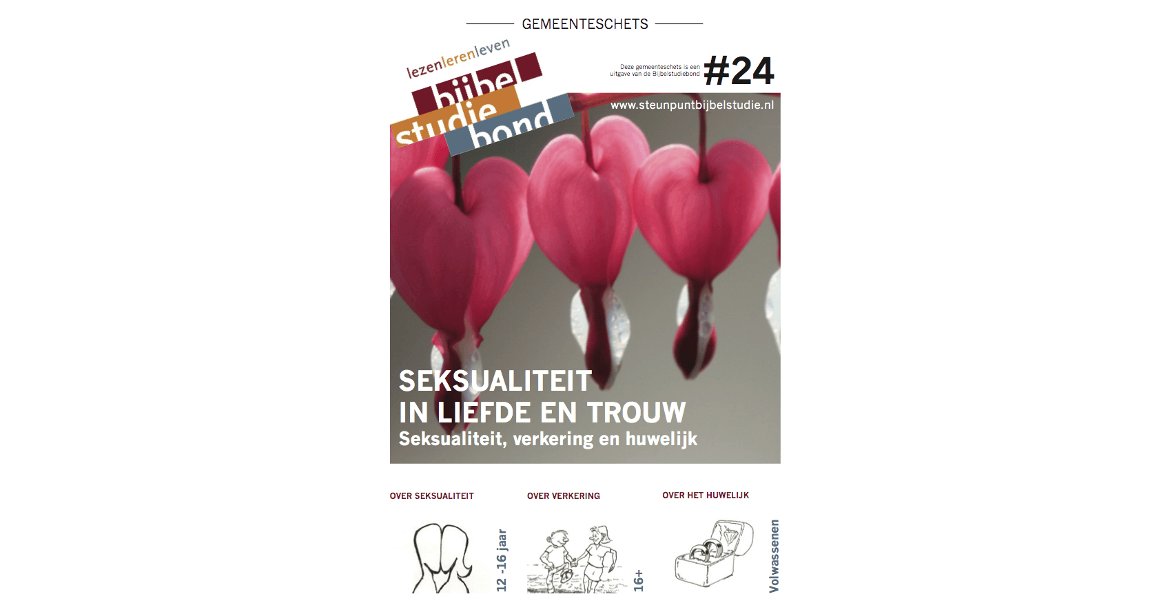 “Praten over seksualiteit vinden we vaak spannend. Het komt heel dicht bij jezelf. Dat geldt ook voor het gesprek over verkering en huwelijk. Een goede sfeer en veilige setting zijn daarbij erg belangrijk.“ zegt Rutger Heij in de inleiding van deze gemeenteschets. De schets bevat bijbelstudies voor 12-16 jarigen over seksualiteit, voor 16+ jongeren over verkering en voor volwassenen over het huwelijk.